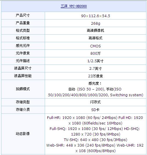 相关信息三洋推荐机型——HD2000
