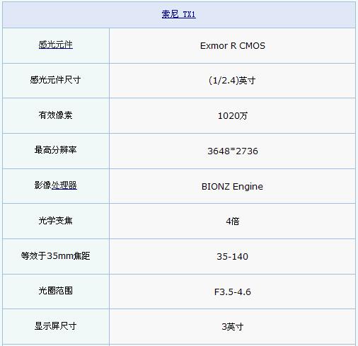 索尼T系列卡片机新机型TX1,使用成像效果更加优秀的Exmor R CMOS图像传感器,可以生成1000万像素的静态照片。并搭载了4倍光学变焦防抖镜头,以及3英寸触摸式液晶屏,并具备高清动态摄像功能。
