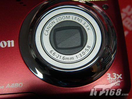 这次佳能A480采用了最新的外形设计,比以往的A系列更具动感。机身搭载了一块1/2.3英寸的CCD感光元件,有效像素达到了1000万,并且配合3.3倍的光学变焦镜头,焦距覆盖37mm-122mm,屏幕是2.5英寸、11.5万像素液晶屏,显示效果一般。另外,这款产品虽然面向于低端,但是其依旧能够支持9点人工智能自动对焦和面部优先功能,唯一一点比较可惜的就是没有光学防抖功能。
