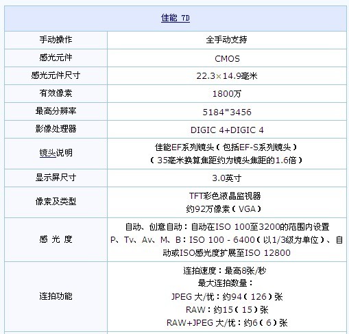 佳能EOS-7D是一款拥有1800万像素成像能力,每秒钟8张连怕性能,并具备高清摄像功能的单反相机。是目前APS-C规格单反中的旗舰级机型,也是很多摄影发烧友升级手中器材的首选机型。