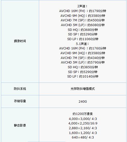 XR系列中各型号产品的硬盘存储空间相对于前作也有了显著的提升。HDR-XR520E配备了目前索尼最大的240GB硬盘,同时还支持记忆棒存储,用户可以根据自己的使用习惯选择介质记录动态和静态影像。