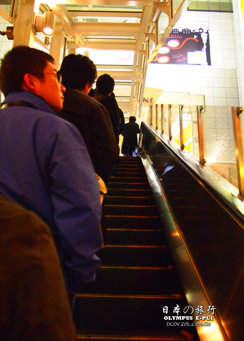 扶梯上的行人一致靠左站立