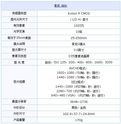 在保持便携长焦紧凑体积的基础上,索尼HX5的性能配置可以用豪华来形容。而2350元的价格还是比较合理的。如果您对长焦产品感兴趣,同时对体积和性能有双重需求,可以考虑这款产品。