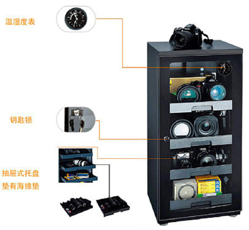 如果您是个器材派,需要为诸多价值不菲的器材找个安心的地方保护,又或者您预算充足,那么最好的防潮办法自然是电子防潮箱了。作为目前最专业的防潮设备,电子防潮箱绝对是最适合存放相机及镜头的环境,里面间隔设计可以方便我们放置多部相机、镜头以及相关配件,加上大多数电子防潮箱还设有防盗锁,简直就是器材的保险柜。