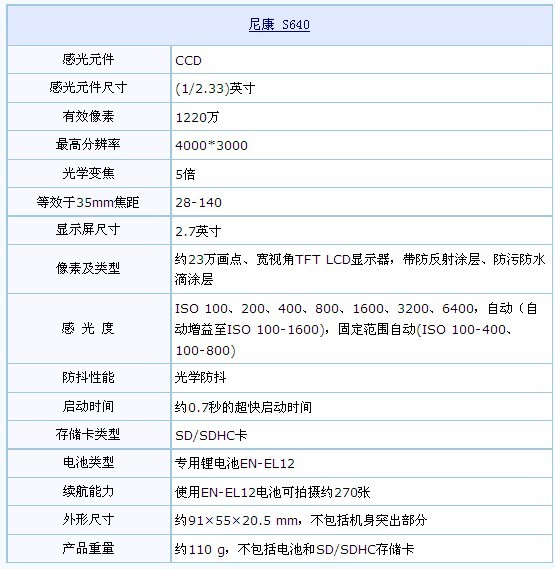 尼康COOLPIX S640相机,配有超快自动对焦系统,可进行各种自动拍摄,1200万像素的分辨率,以及精准的5倍光学变焦尼克尔镜头和28mm广角焦段。尼康COOLPIX S640相机性能特点包括超快速自动对焦,仅需约0.7秒的超快启动时间,以及超短快门释放时滞,可助你及时抓拍人像表情。