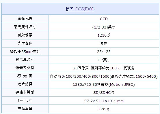 图为:松下数码相机FX65