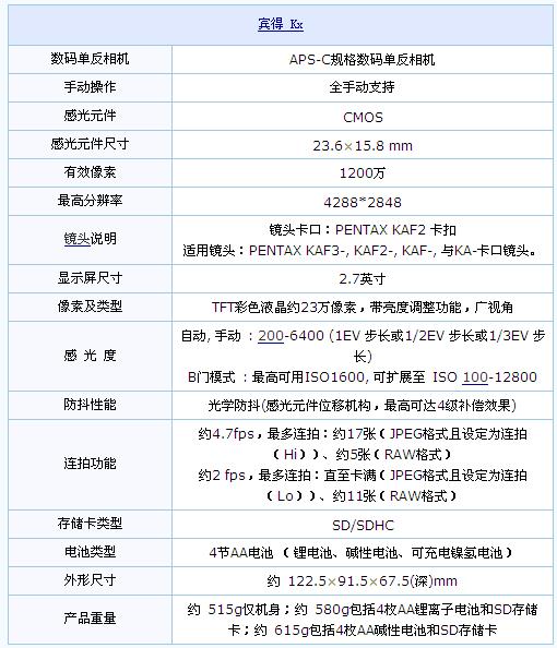 宾得新一代入门级单反K-x,拥有1200万像素的成像能力,11点自动对焦系统,一秒4.7张连拍、1/6000s的高速快门,并且配备了720p的高清摄像性能。