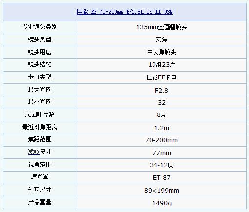 图为:佳能EF 70-200mm f/2.8L IS II USM镜头