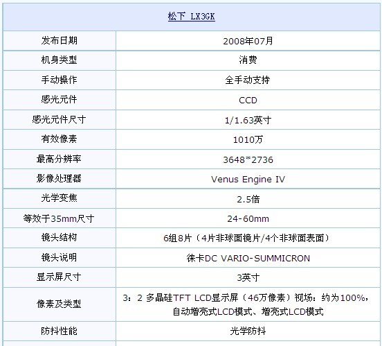 图为:松下数码相机LX3GK