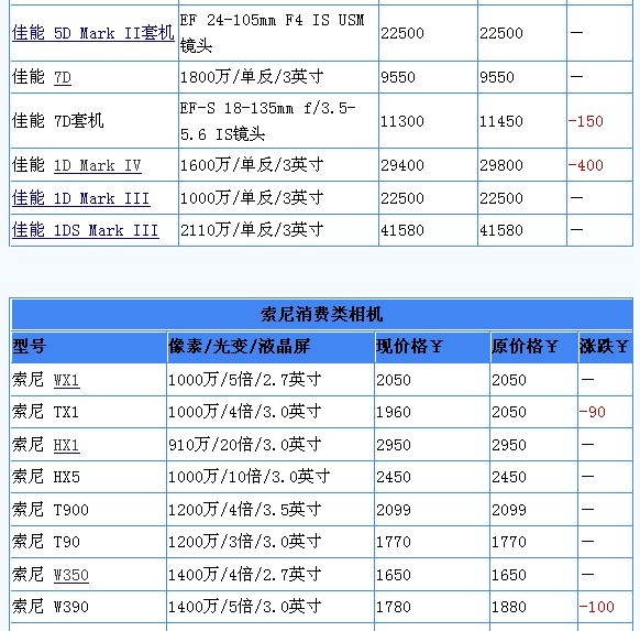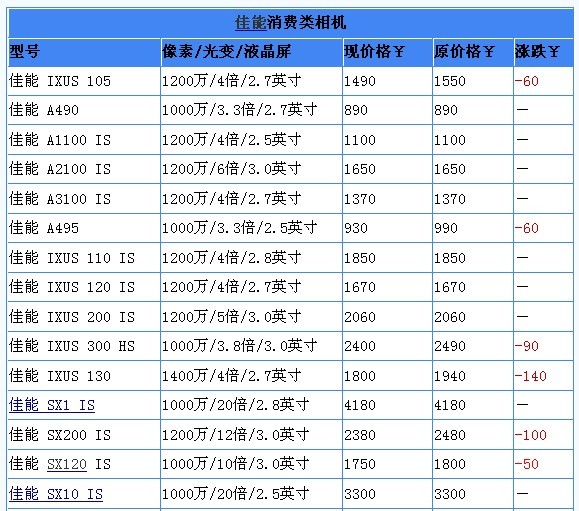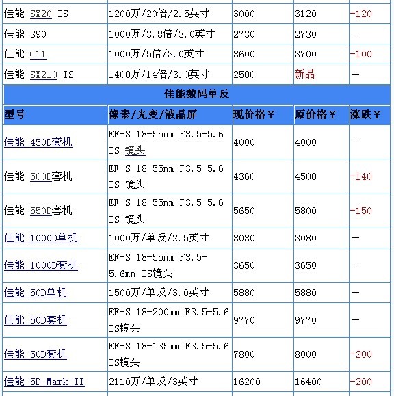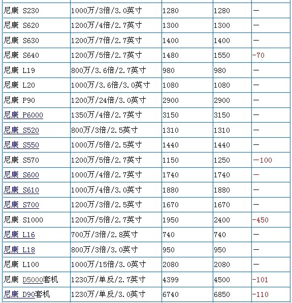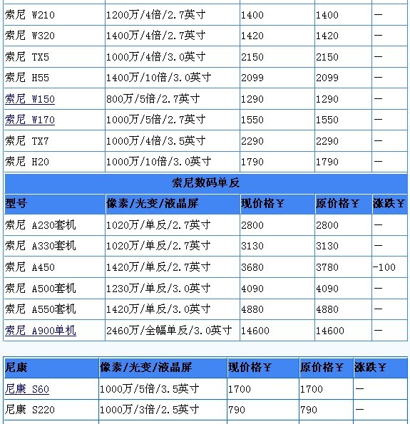 下面请看,2010年6月29日百款数码相机最新价格列表。