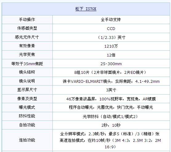 图为:松下数码相机ZS7