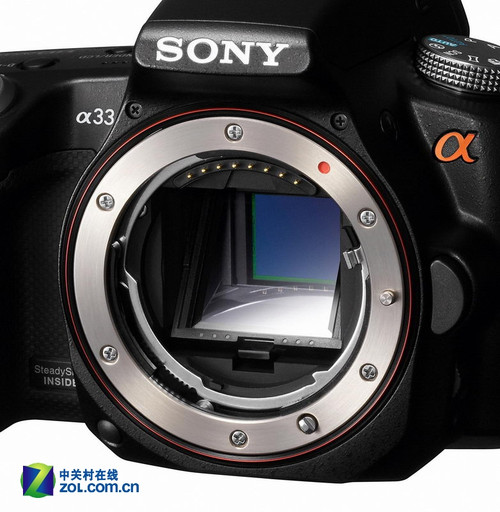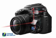 A55/A33采用了“半透镜”技术,当光线通过这块“半透镜”到达Exmor APS HD CMOS用于成像和电子取景的同时,有一小部分光线被反射到位于半透镜上方的AF传感器上,用于相位检测自动调焦。由于两次拍摄之间无需抬升和放下反光板,使55/33的最高连拍速度10张每秒超高速连拍(A33实现7张连拍)达到了专业级单反相机的连拍水平,并通过全程精准快速的自动对焦轻松捕捉稍纵即逝的精彩瞬间。