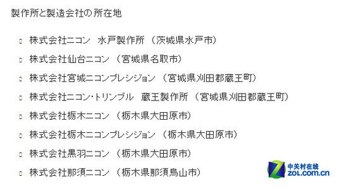 位于宫城县、枥木县和茨城县的制造工厂曾在震后都已关闭停产;尼康仙台的顶级相机生产工厂在地震中受到严重损坏,也已经停止生产,但我们一直在努力修复,预计将在3月底恢复生产;其余受损较小的工厂在3月23日都将陆续开始工作;而尼康公司枥木县分厂,从上周五(3月18日)已经开始运作。