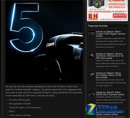 Cameragearguide网站截透露的关于佳能EOS 5D Mark III信息:
