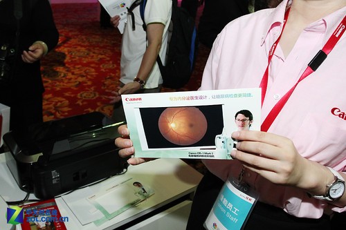 眼科展示区还展示了应用佳能EOS光学原理的CX - 1和CR- 2数码眼底照相机等眼科系列产品,高品质的诊断视网膜图像、低闪光强度,为患者带来便捷、舒适的检查过程。与此同时,医疗中心还带来了适用于DICOM模式的高品质成像ImagePRESS C1+打印机及SX投影仪系列。这一跨媒体成像技术的应用,充分展示了佳能在影像输入和输出方面的完备解决方案。