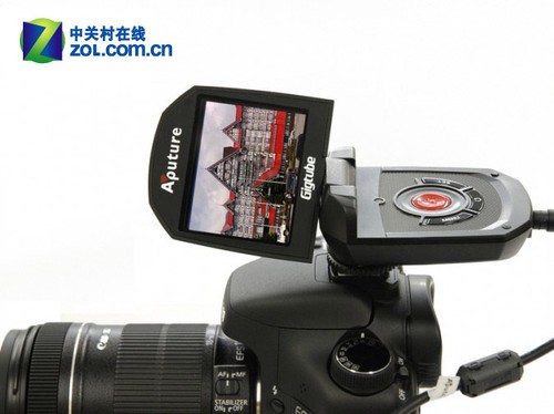 Aputure数字遥控取景器可实现多角度取景,且配备了一块2.5英寸的可旋转液晶显示屏,逆时针方向可旋转180°、顺时针方向可旋转90°,且遥控器还内置了快门释放按钮,通过控制线同相机相连就可离机远距离遥控相机快门进行拍摄。