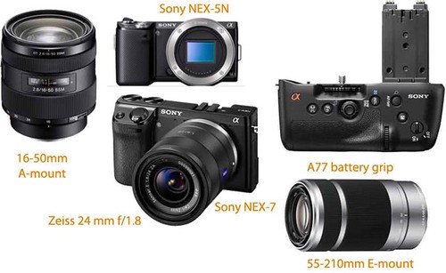 行业资讯今天笔者在国外著名的SonyAlphaRumors网站看到最新消息,该网站公布了索尼8月发布会上将问世的新品照片。其中包括NEX-5N、NEX-7、A65、A77、LA-EA2转接环、外置OLED电子取景器、一支E卡口的索尼蔡司24mm F1.8 大光圈定焦镜头,以及一支E卡口的55-210mm F4-6.3 OSS防抖变焦镜头。
