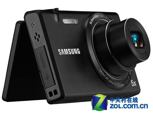 三星MV800采用了一块1/2.3英寸1620万像素CCD感光元件,搭载一支5倍光变、等效焦距26-130mm F3.3-5.9广角镜头,以及一枚3.0英寸的触控式垂直翻转屏,屏幕可向上翻转180度,并搭配类似智能手机的Smart Touch 3.0使用界面。此外,该机还具备Smart Auto智能自动模式、全景拍摄模式、丰富的特效滤镜和相框,包括让脸部变形的趣味效果,并支持3D静态照片拍摄,以及720p视频短片拍摄。
