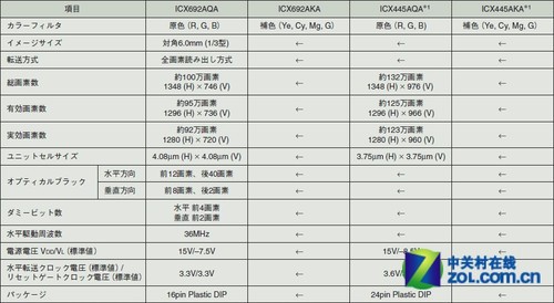 产品尺寸为1/3.0寸,对角线6.0mm,可以适用于诸如监控摄像头,IP摄像头以及电脑摄像头等等,相比前一代产品ICX445提高了将近一倍的感光能力,进而非常有效的提高画质和弱光效果。关注监控摄像头的朋友相信不久就可以在市场上看到这款产品,就让我们期待吧!