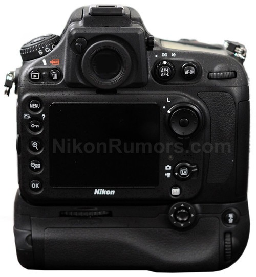 然后我们来看看后面谍照,应该说这也是让很多朋友觉得不真实的地方,那就是D800的对焦选择消失了,不过可否还记得D7000呢?D7000意味着以后尼康高端相机都会将所有对焦选项挪到前部左侧,所以消失也是顺应这一潮流。